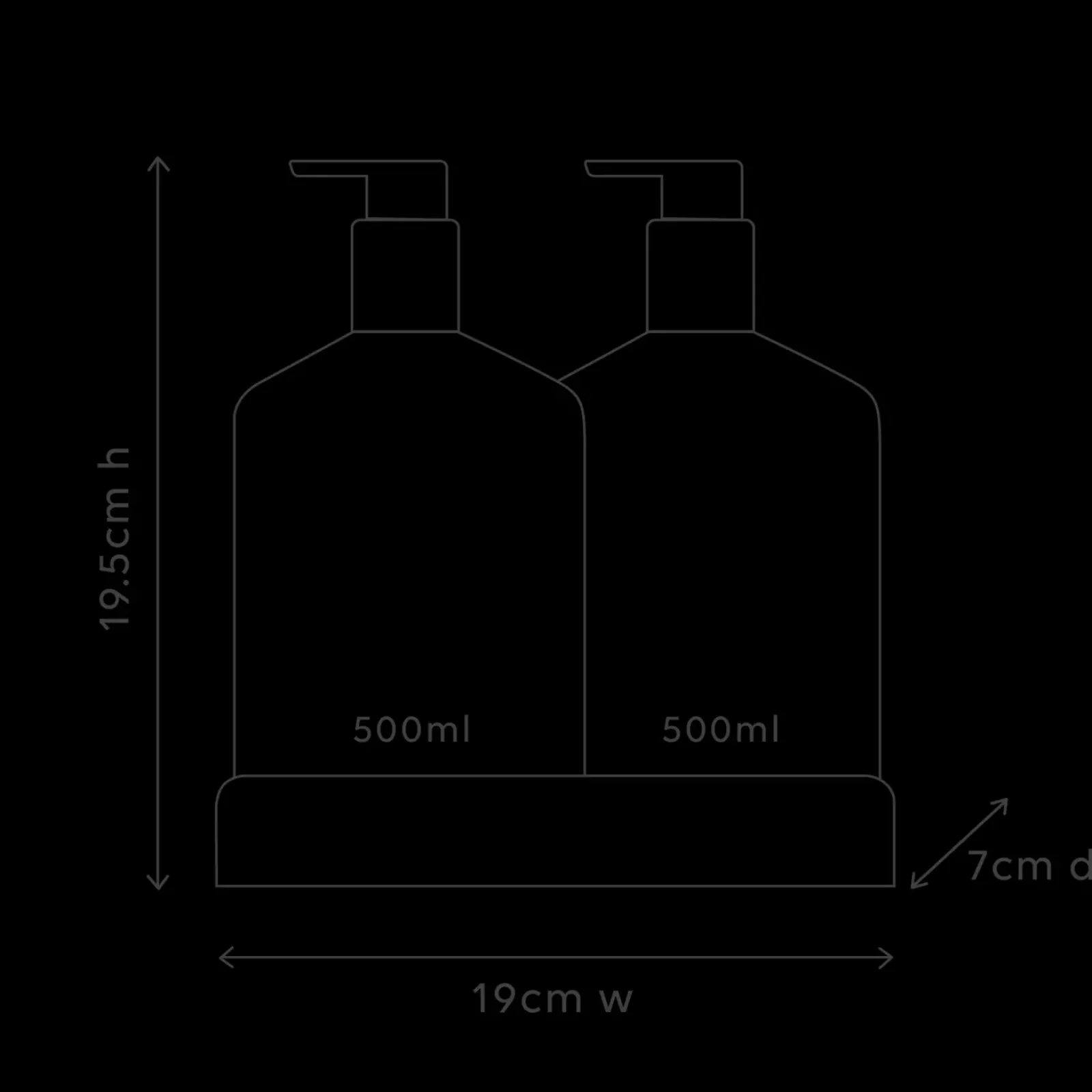 The Duo includes a 500ml hand&body wash, 500ml hand&body lotion and a matching tray.