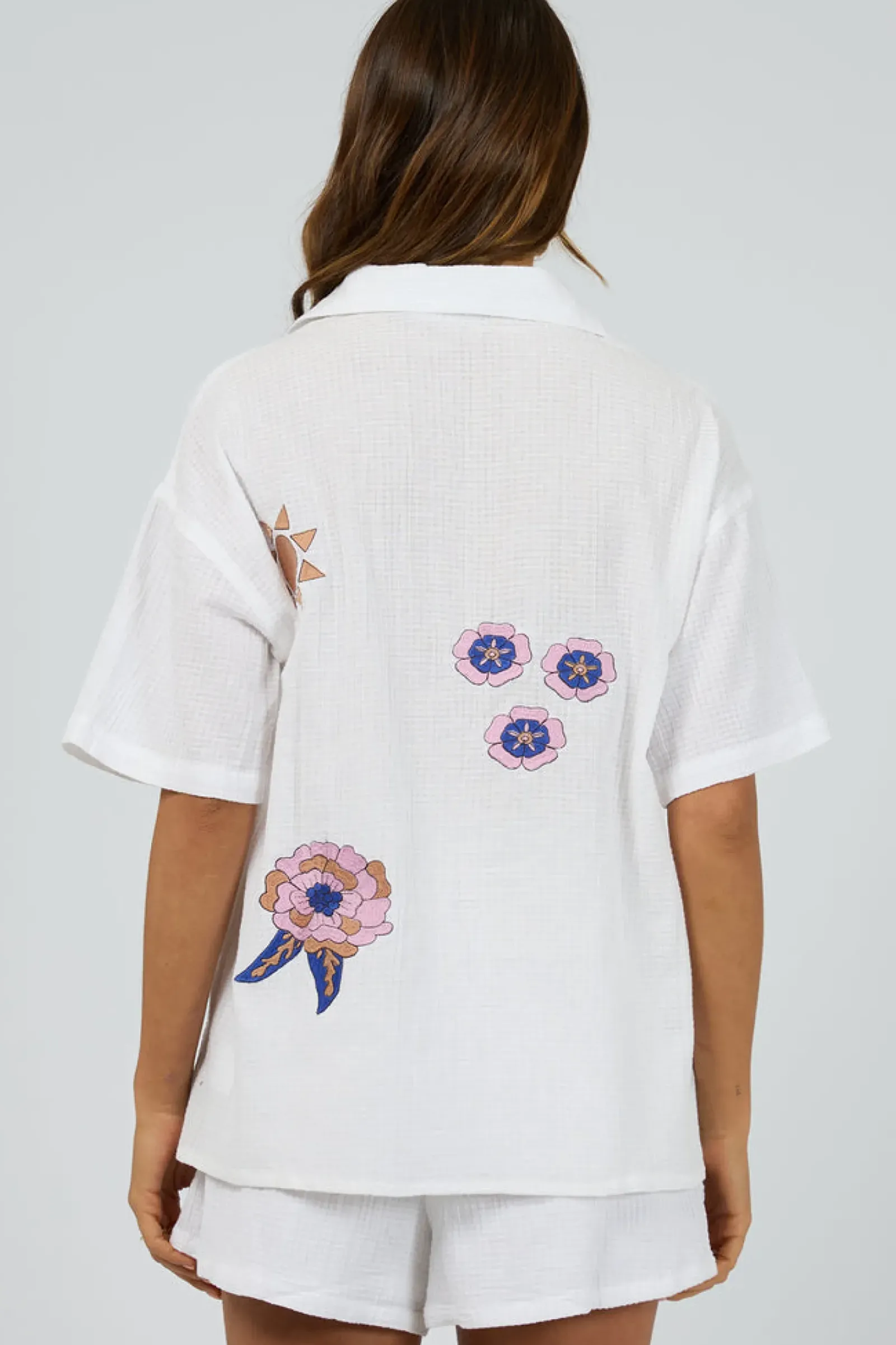 A gorgeous vintage white, textured shirt with the sweetest embellishments.Slightly oversized.