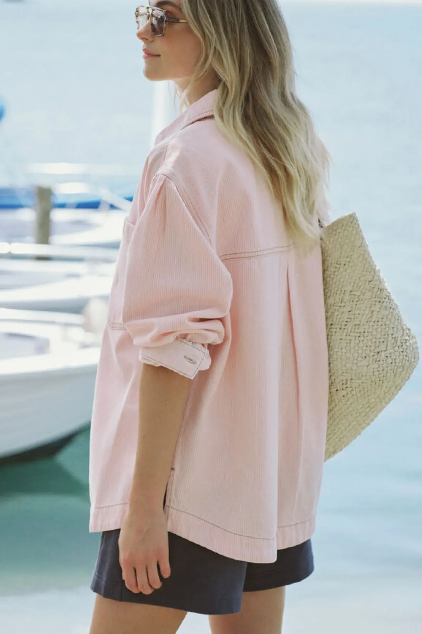 Ceres Life Curved Hem Shacket – Washed Coral Stripe Discount