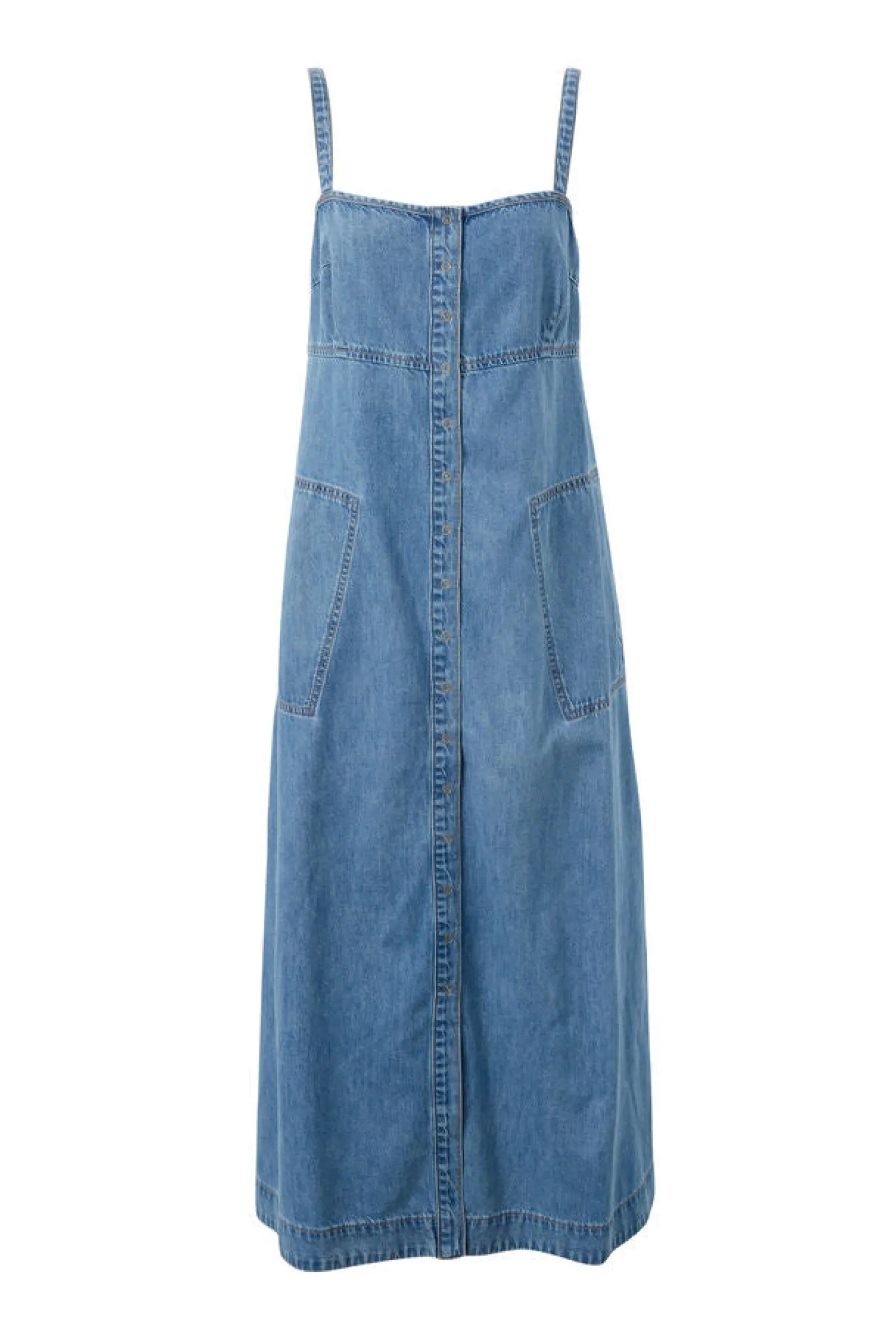 Meet our Denim Beach Dress – the perfect blend of casual elegance and carefree comfort. Crafted from lightweight denim using 100% organic cotton with a soft hand-feel. This midi-length dress features side splits, side seam pockets, functional snaps down the front and adjustable straps for the perfect fit.
