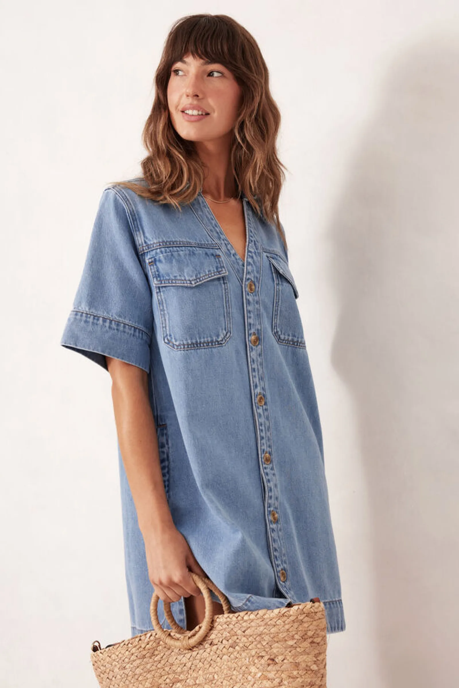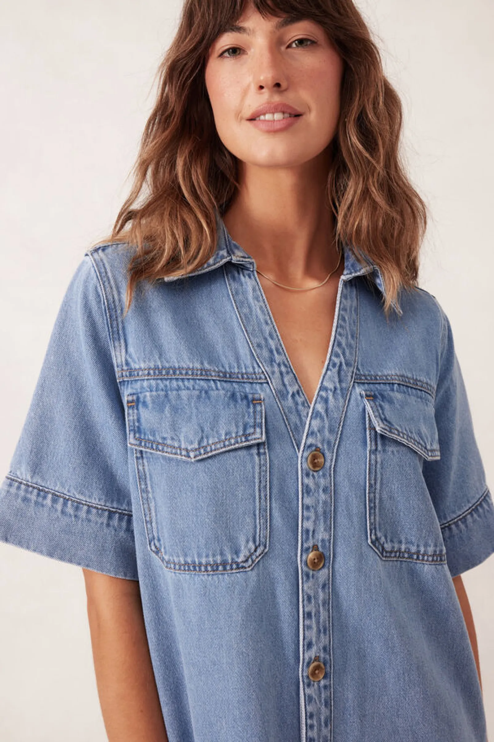 Ceres Life Relaxed Shirt Dress – Mid Vintage Blue Clearance