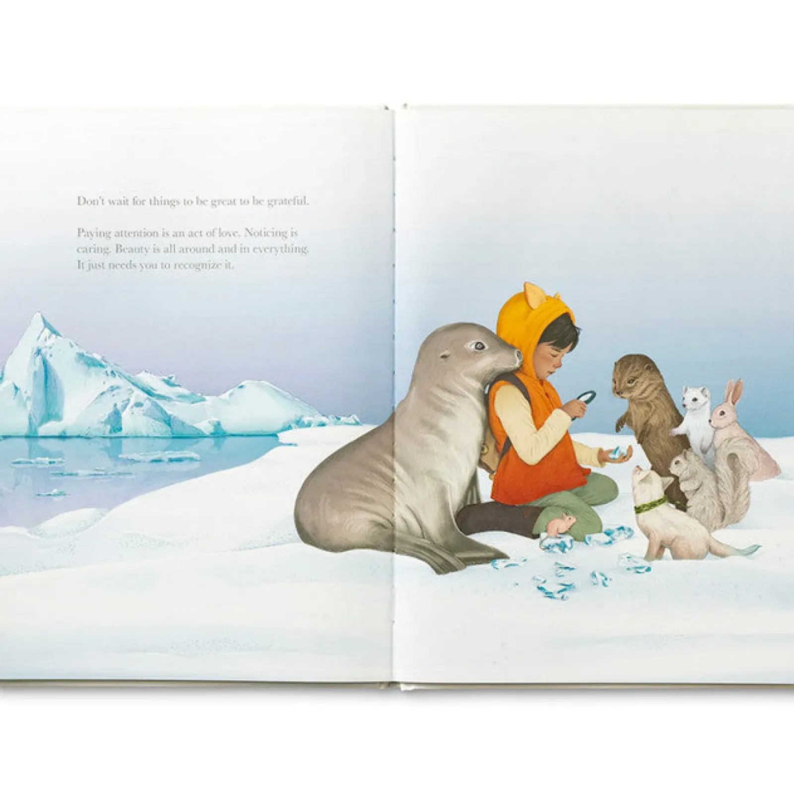 Throughout the pages, a young child adventures alongside an adorable arctic fox friend, exploring the world’s wonders together, and learning to believe they are among them.