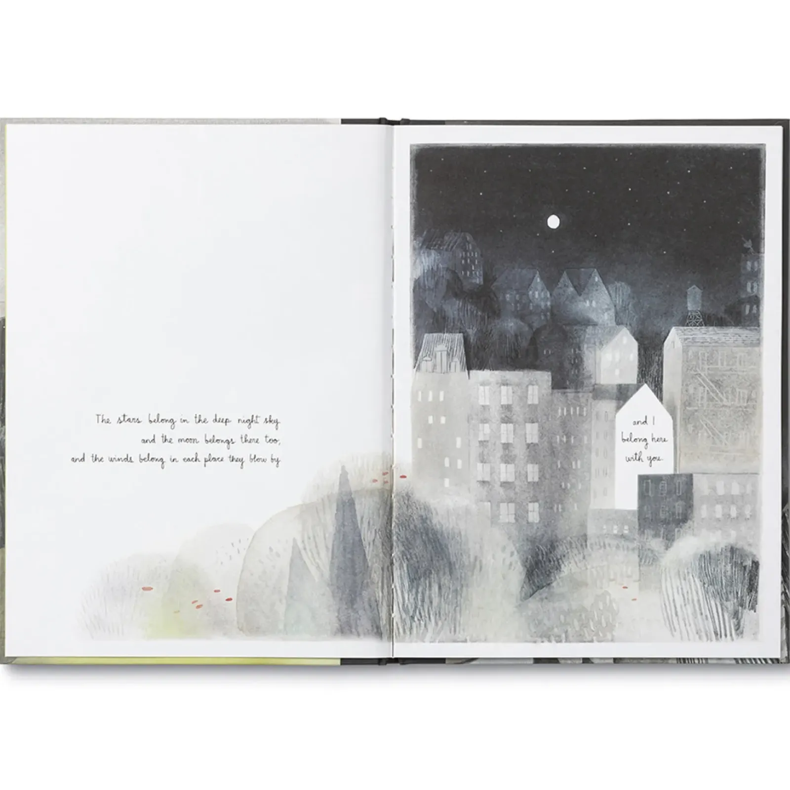 The stars belong in the deep night sky, and the moon belongs there too, and the winds belong in each place they blow by, and I belong here with you.