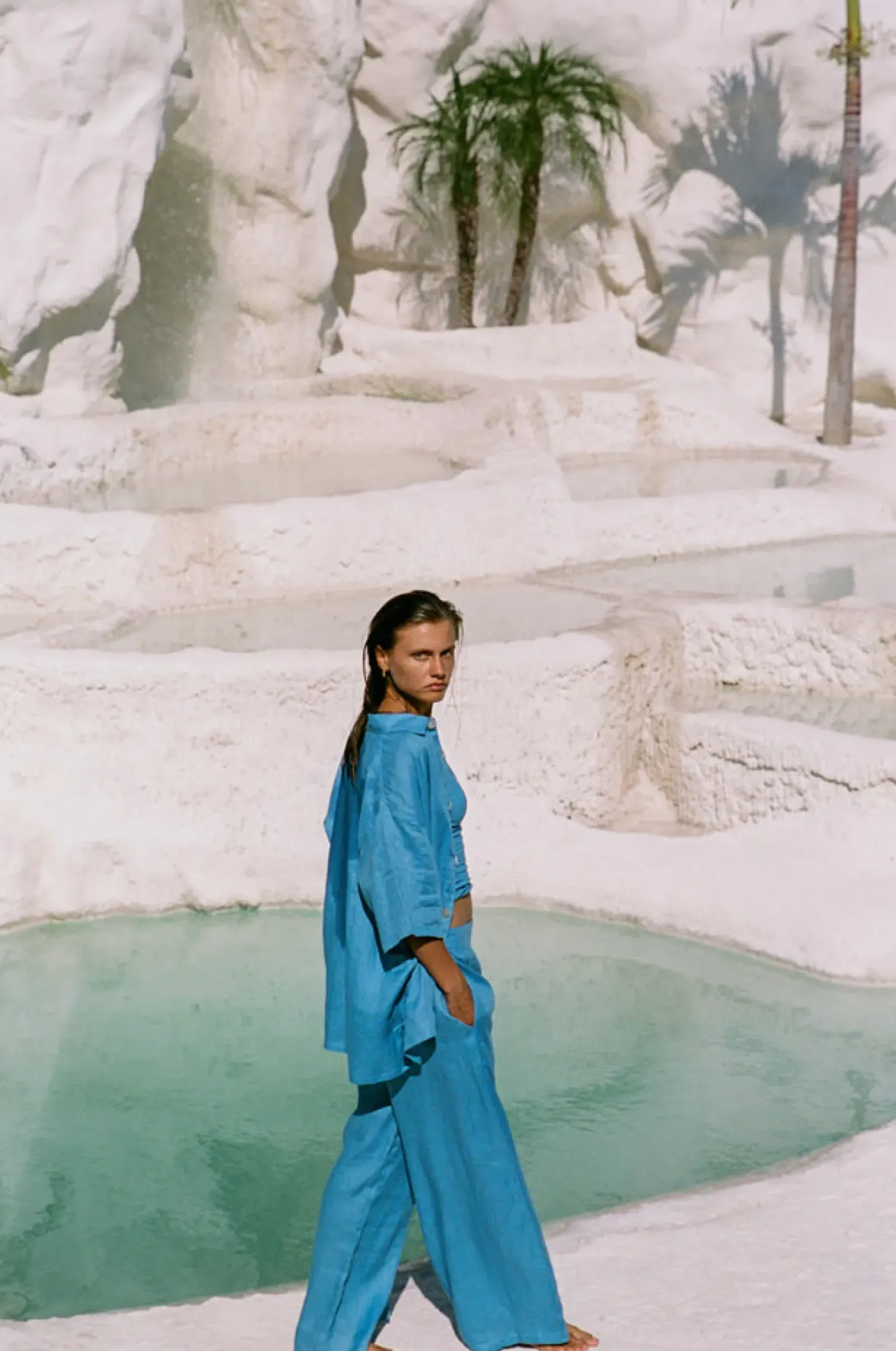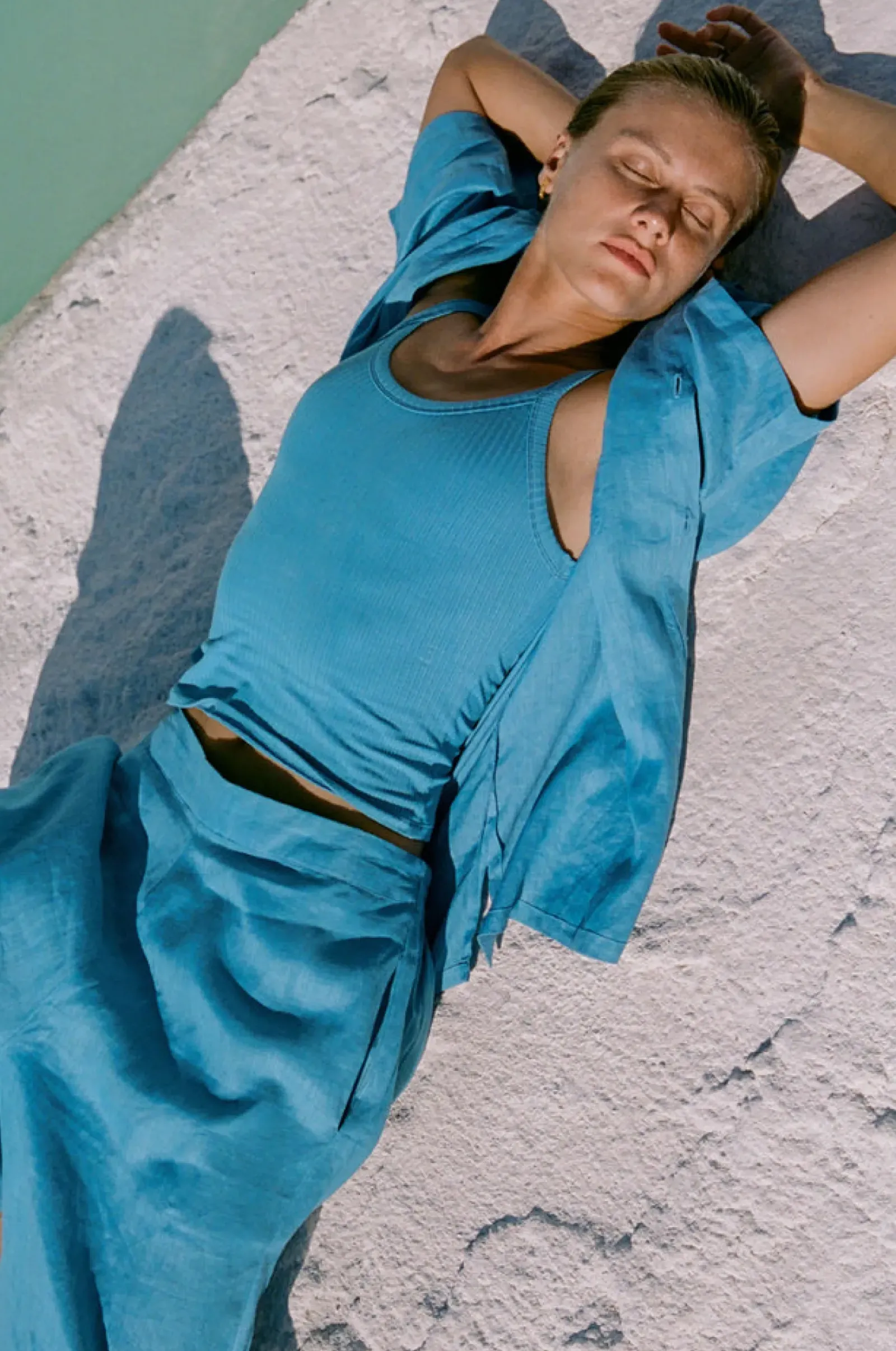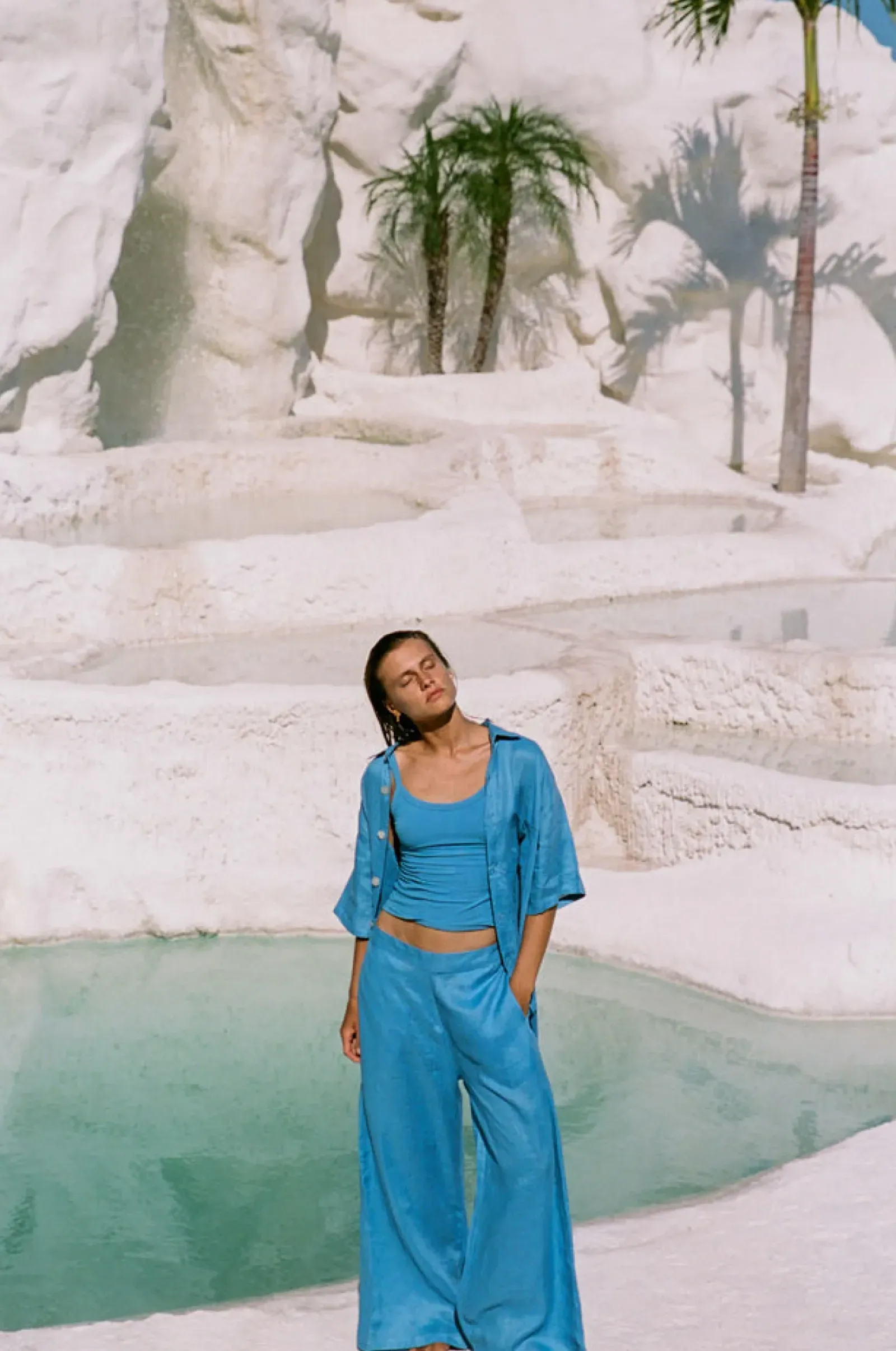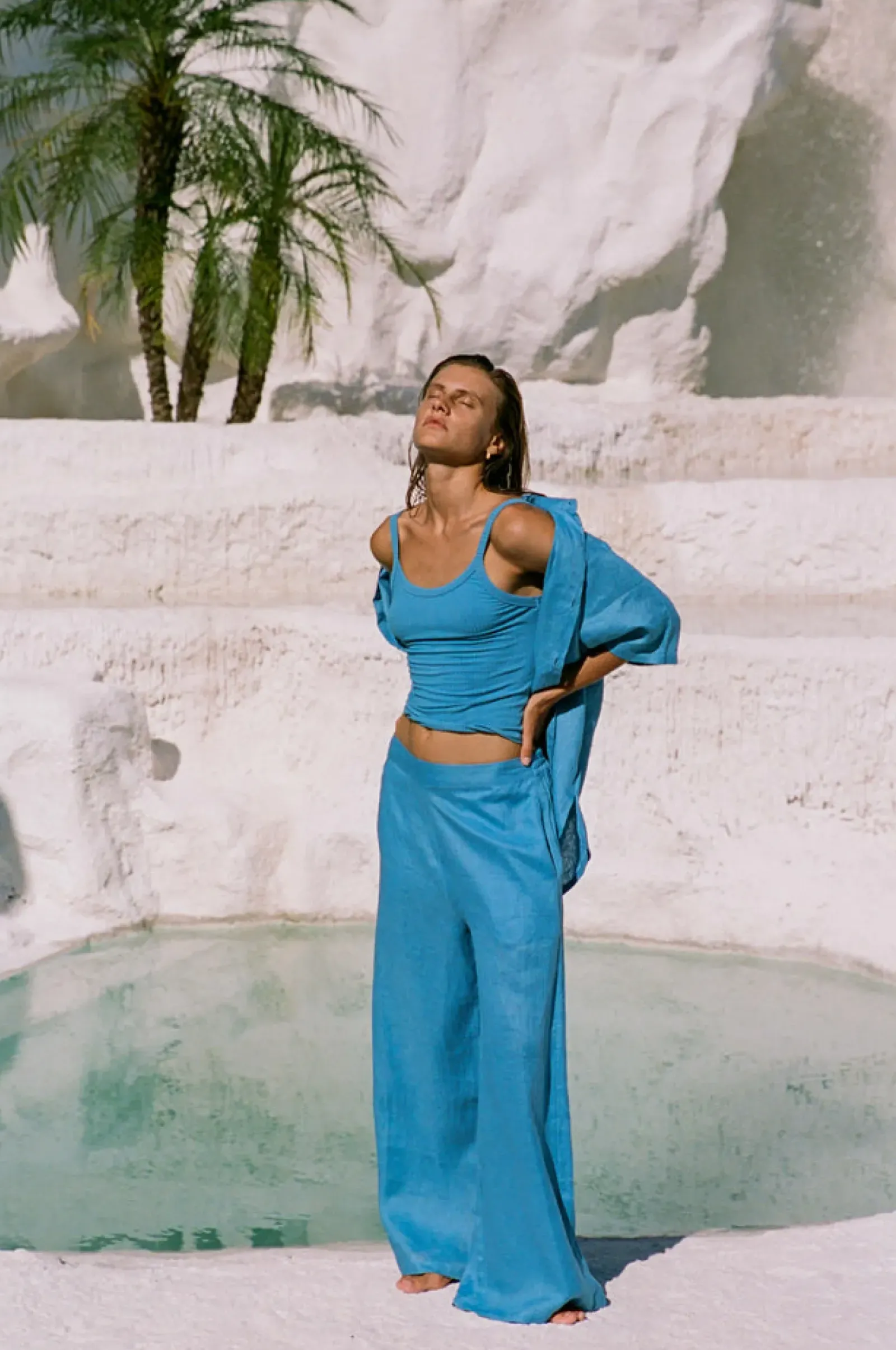 Introducing the Breeze Trouser, made from 100% Pure French Flax Linen. Effortlessly chic, these wide-leg pants feature a flat front and elastic back for ultimate comfort and a great fit. Crafted from soft, breathable fabric, the Breeze Trouser is perfect for warm days and casual outings. Its versatile design pairs seamlessly with the Breeze Shirt and Movement Tank for an elevated look.