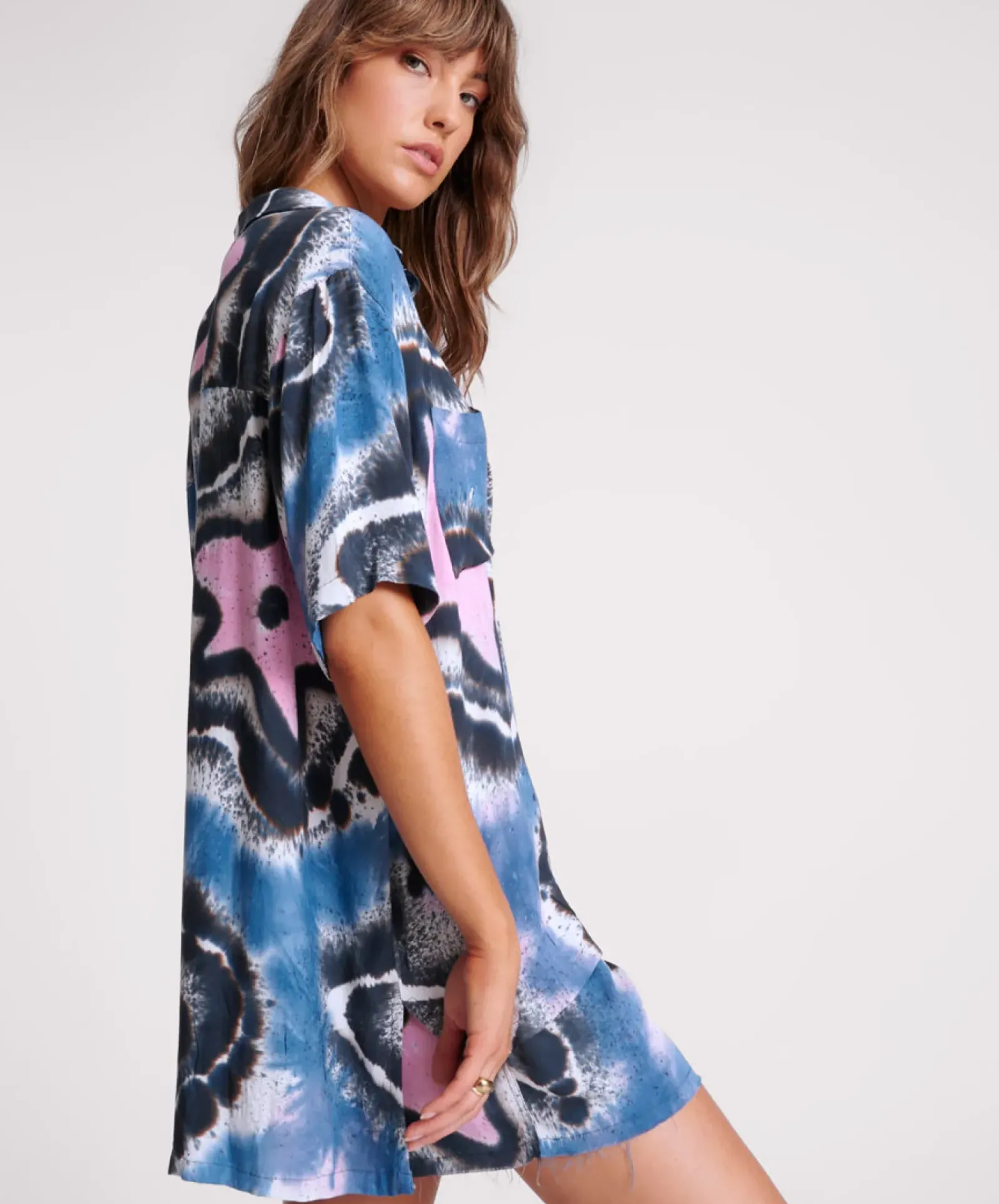 One Teaspoon Hand Painted Floral Short Sleeve Shirt – Multi Fashion