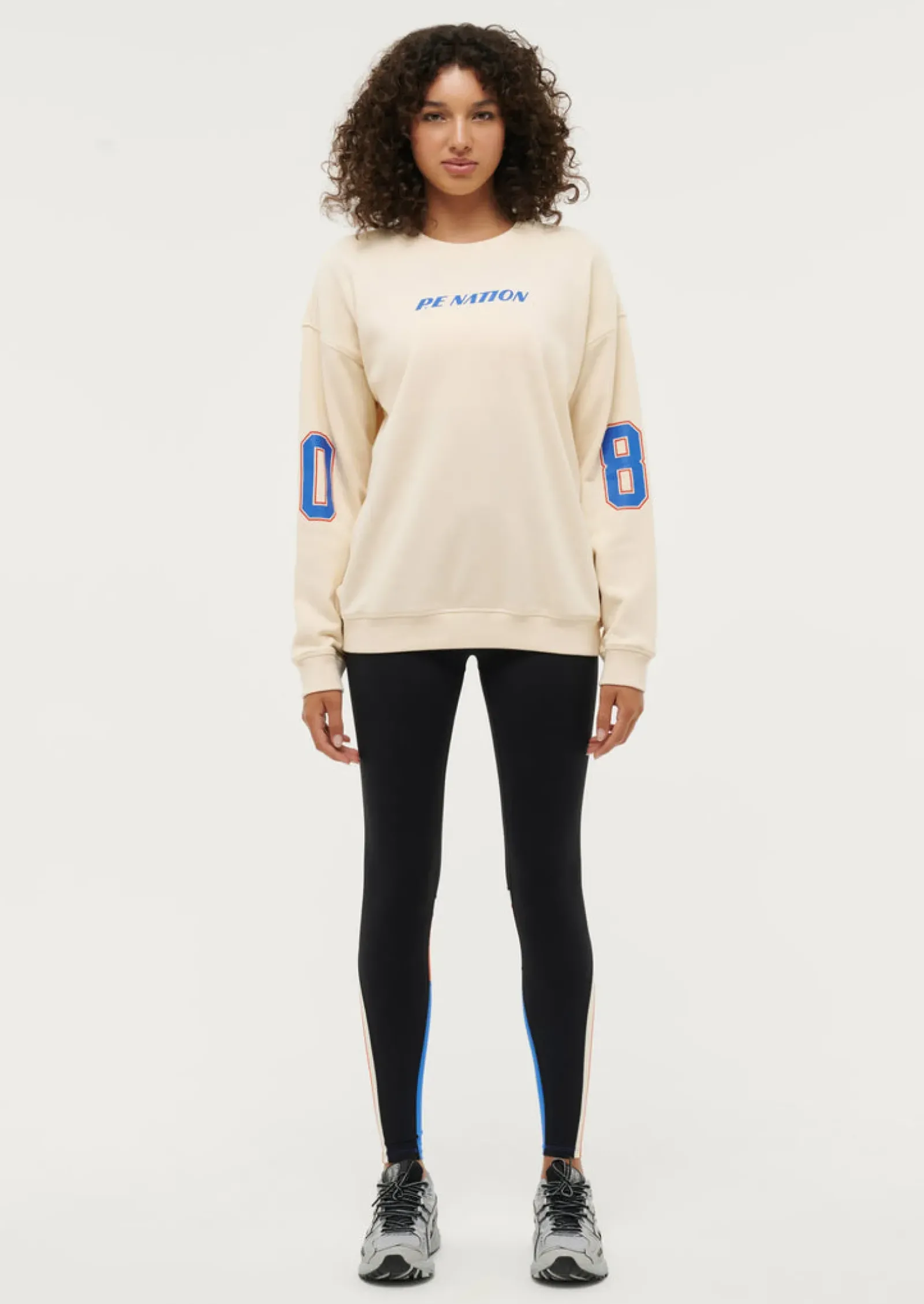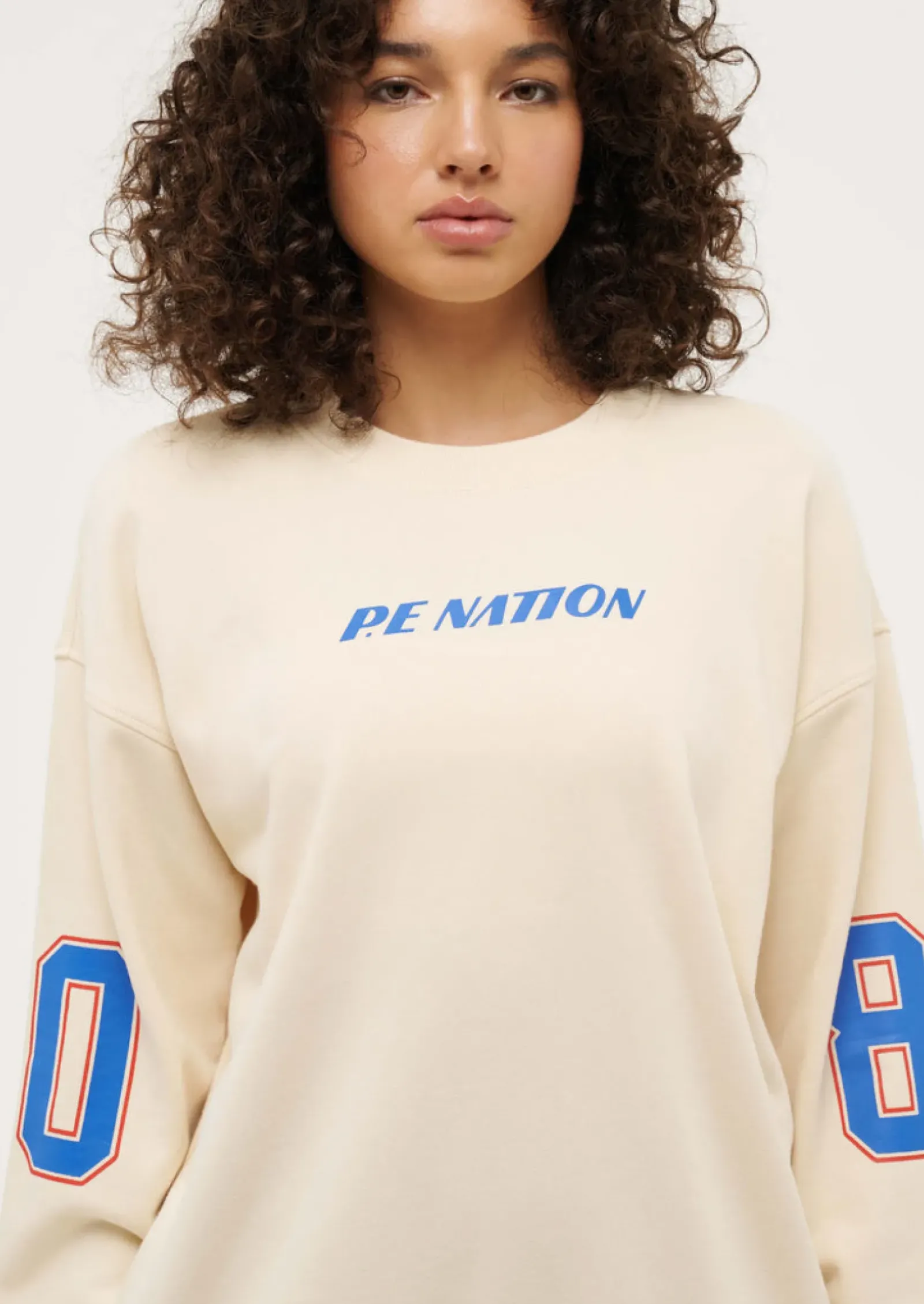TheRematch Sweat in Pearled Ivorycomes as part of ourDeparture Lounge Collection– timeless staples in signature fabrications you’ll never want to take off.Elevate your everyday wardrobe with this premium fleece layer. Crafted from 100% organic cotton French terry, the Rematch features a relaxed fit, classic crew neck, and soft ribbed neckline, hem, and cuffs for ultimate cosiness. Signature P.E Nation graphics in contrast colourways at the sleeves and centre-front further enhance the overall aesthetic.