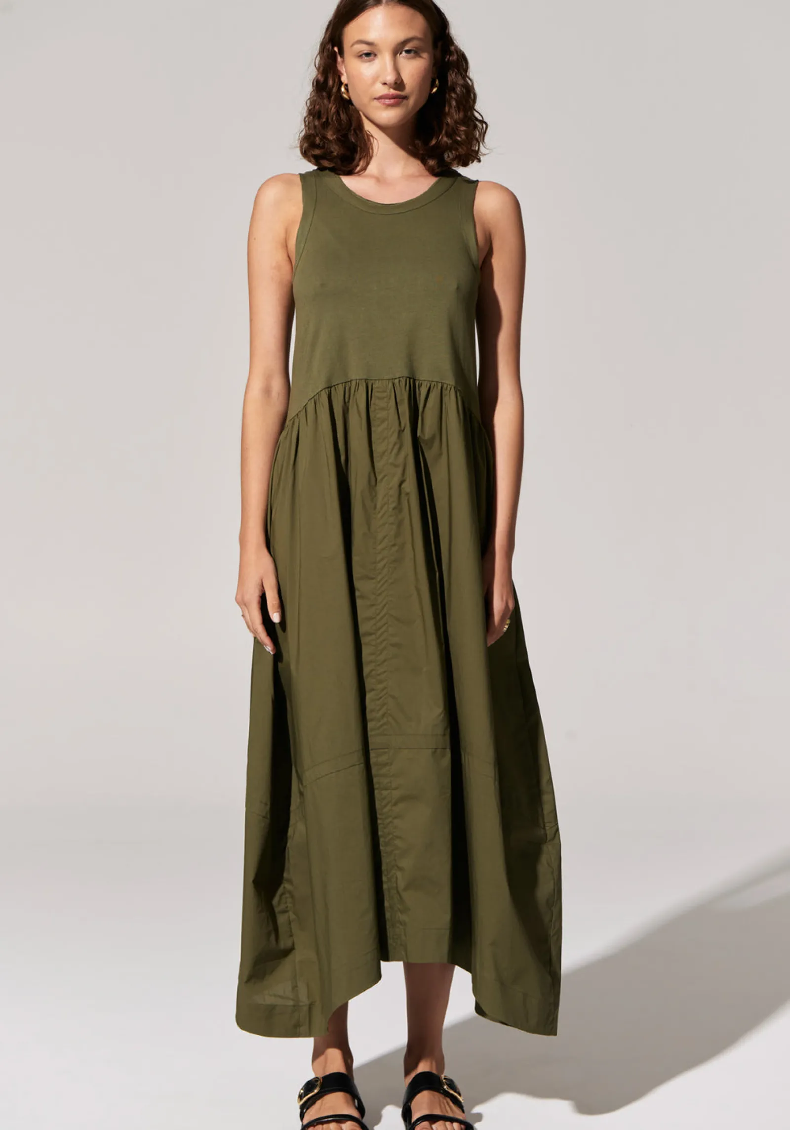 The Toya Tank Dress just might be the perfect throw on dress for Summer! Featuring a cotton jersey top and a cotton shirting skirt.