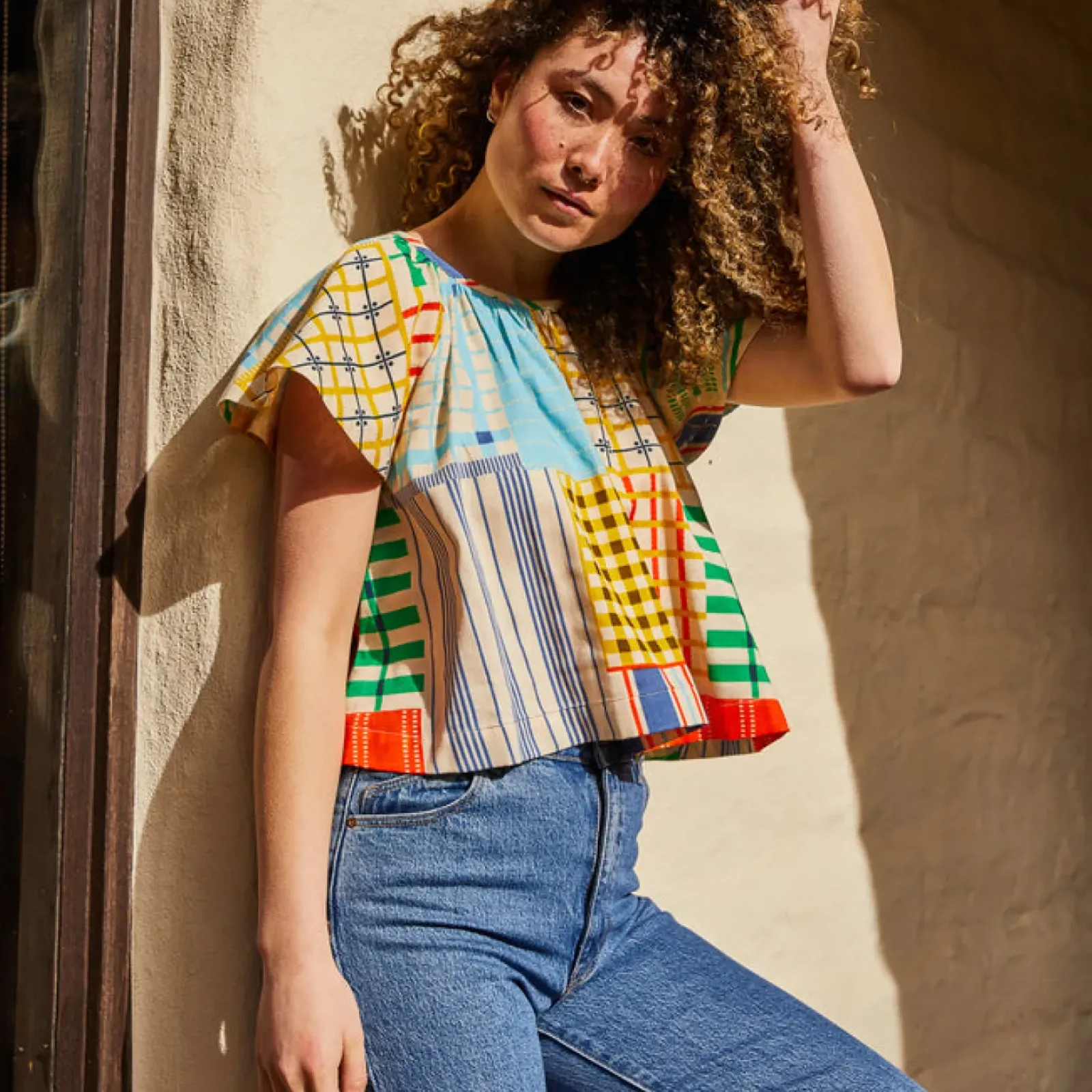 Designed for long lazy summer days, our double cloth cotton blouses are a gorgeous addition to any wardrobe. A swing style silhouette with a cropped length and delicate ruffle sleeve delivers a playful touch of vintage flair.