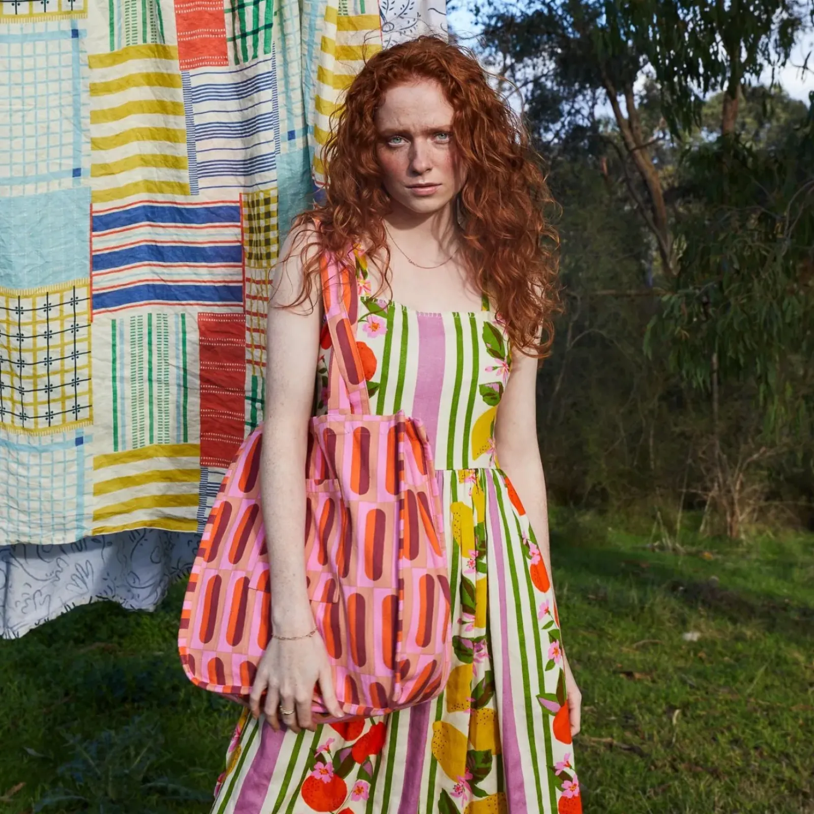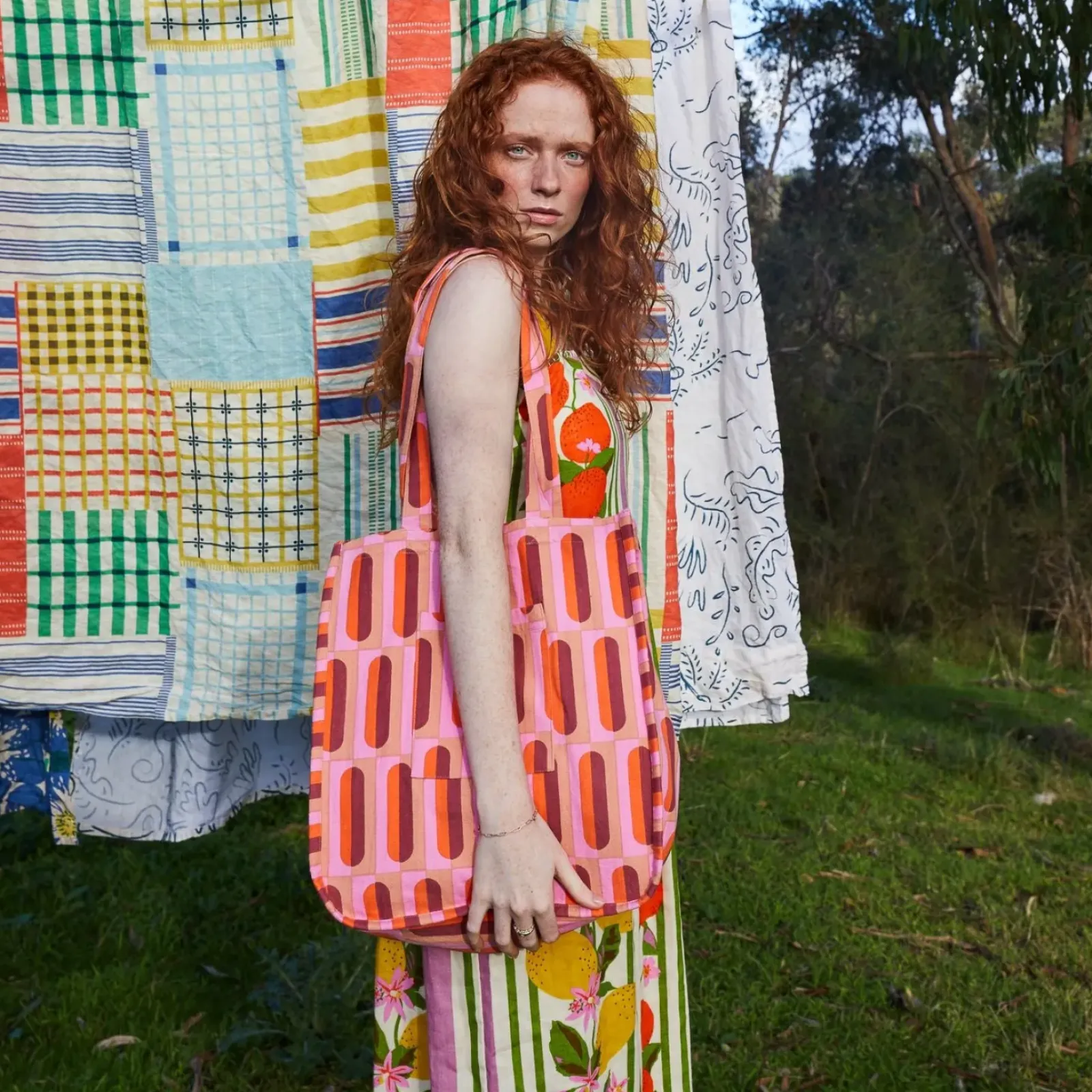 “Playing on our architectural Redondo print, this spacious tote bag brings rich colour to your accessories collection. Bold arches in complementary hues are inspired by the striking geometry of handmade tiles and time-worn buildings, creating a simple design with a big impact.” – Phoebe’s Style Notes