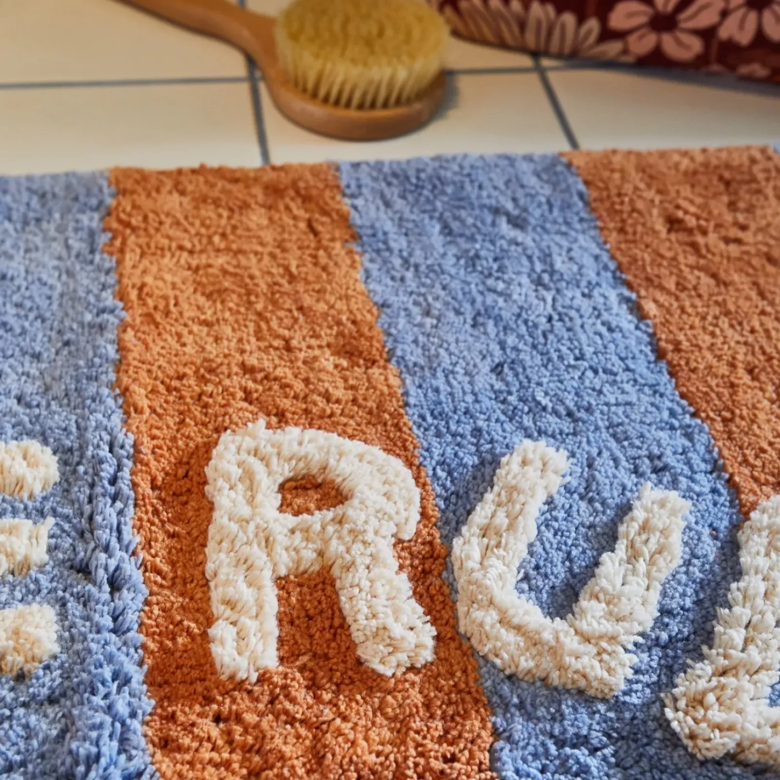 “Our ever-iconic ‘Nudie Rudie’ slogan gets a refresh in the Zelia bath mat. A timeless stripe is transformed with modern and unexpected colours. This practical and playful design is made to bring a smile to your face every time you step into the bathroom, kickstarting your day with a dose of cheer.” – Phoebe’s Style Notes