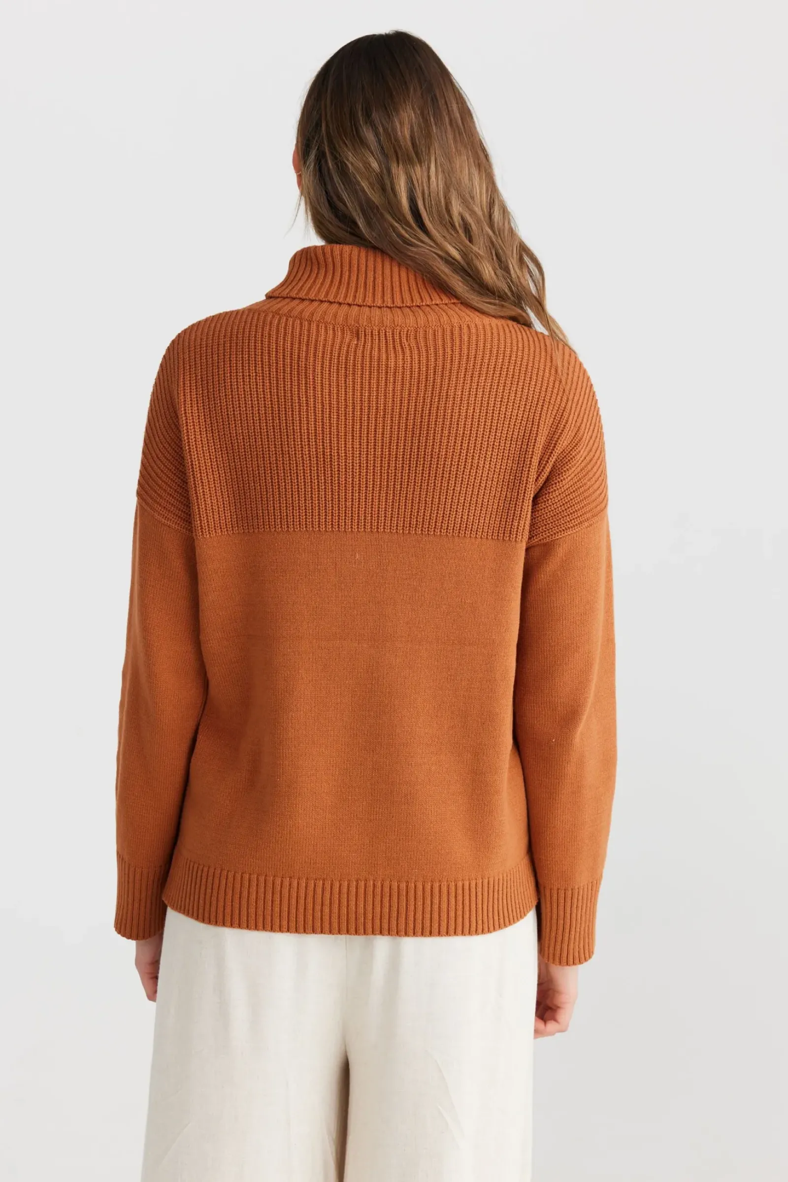 RELAXED FITROLL NECK STYLE2-TONE KNIT EFFECTWIDE RIBBED CUFF60% COTTON40% ACRYLIC