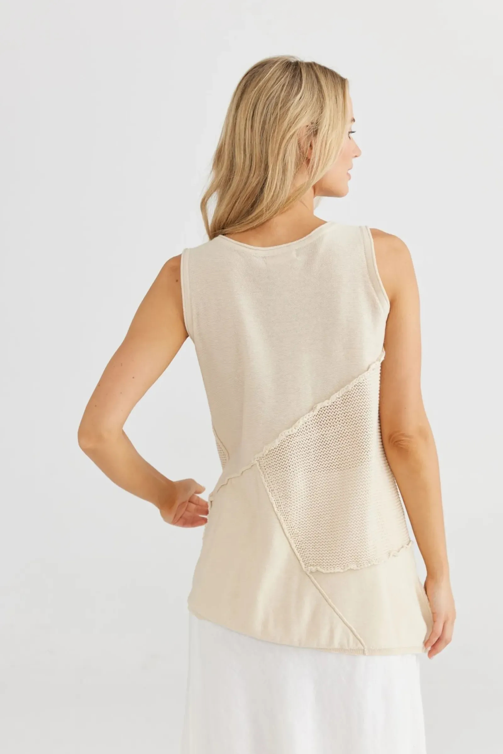 • ROUND NECKLINE• REGULAR FIT• TEXTURED PANEL DETAIL• ASYMMETRICAL HEMLINE55% Linen / 45% CottonBUST = XS: 85cms…