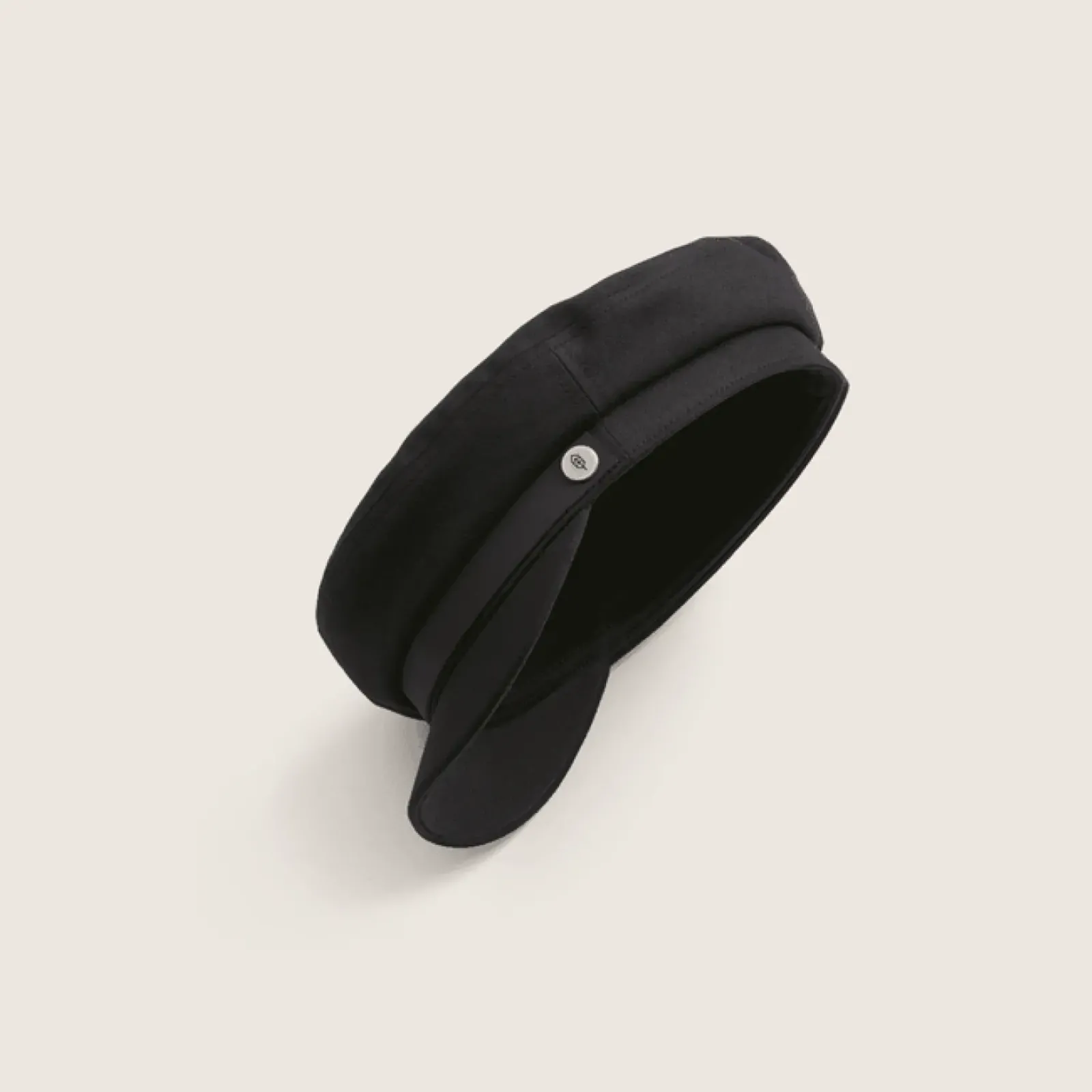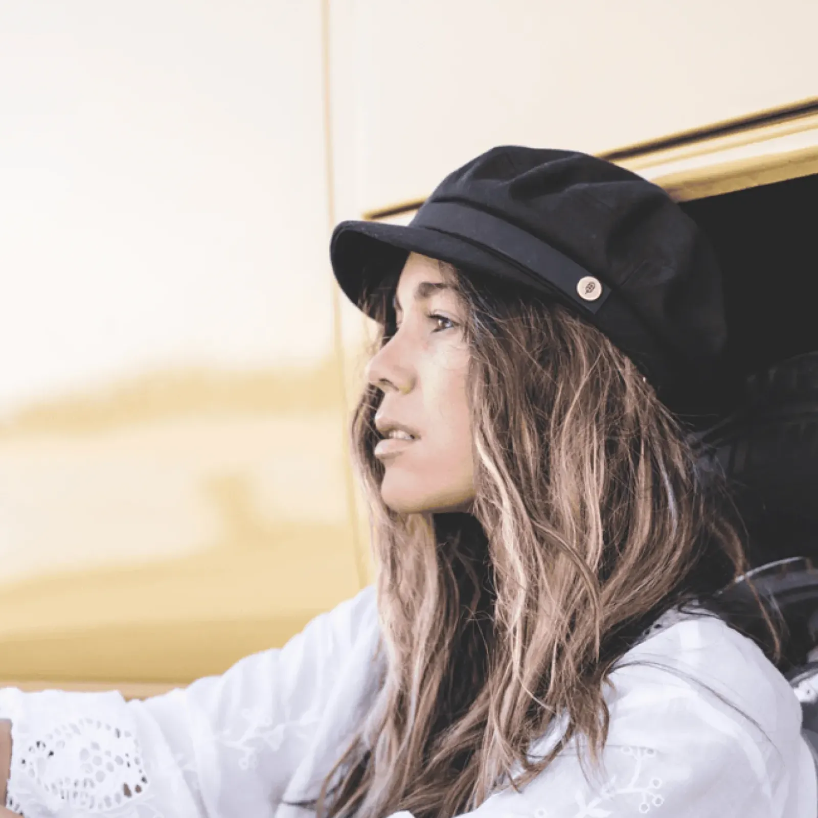 The Foster Black baker boy cap is a cotton canvas, vintage-inspired field cap made for every season. Black men and womencap trimmed with black leather.